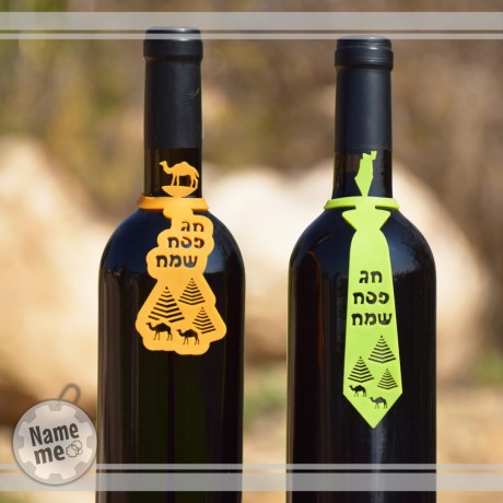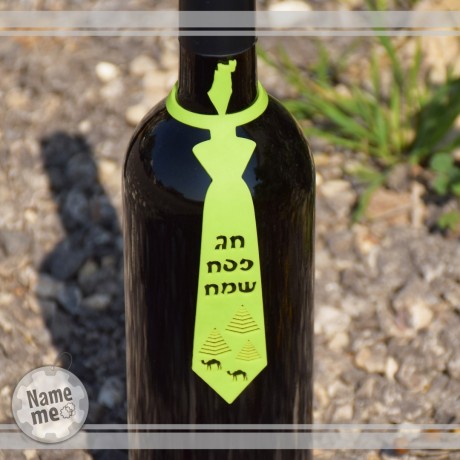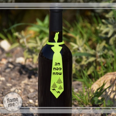 תווית לבקבוק יין בצורה של עניבה עם ברכת חג אביב שמח. מדובר בפתרון יצירתי לקישוט השולחן בחגים ובאירועים שונים. התווית היא רב שימושית, וניתנת להעברה בקלות בין בקבוקים. ידידותי-ניתן לשטיפה במדיח ומכונת כביסה. (לא מקבלת כתמי יין) התווית מתאימה לרוב בקבוקים. המוצר מגיע בשישה צבעים לבחירתכם. זמני ייצור עד 10 ימי עבודה + זמן משלוח.